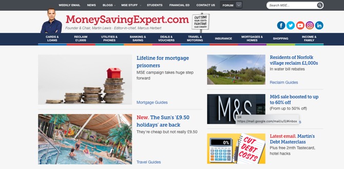 Money Saving Expert es un recurso absolutamente enorme que cubre todo lo que podrías necesitar para ahorrar dinero. Ya sea que estés tratando de encontrar cupones o buscando ofertas de tarjetas de crédito, encontrarás el asesoramiento que necesita. El sitio también tiene un foro increíblemente activo si tienes preguntas más específicas que hacer.