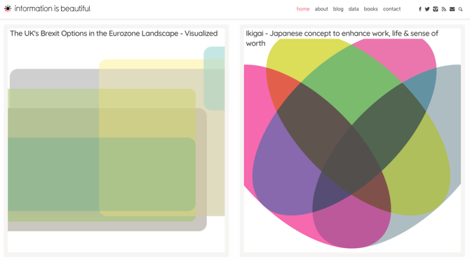 Probablemente el mejor sitio de visualización de datos que existe, Information is Beautiful destila conjuntos complejos de datos en infografías ingeniosas y visualmente impresionantes, que definitivamente te enseñarán una o dos cosas.