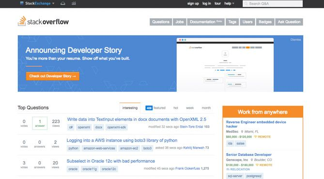 ¿Aprender a programar? ¿Intentando programar? ¿Atascado o sin entender un concepto? ¡Pregunta a StackOverflow! Entre el archivo de búsqueda (úsalo primero) y una comunidad activa de expertos, StackOverflow es un recurso fantástico para programadores principiantes y establecidos por igual.