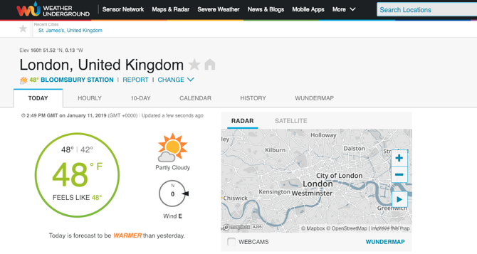 Uno de los mejores sitios meteorológicos que existen, Weather Underground es un gran recurso, especialmente si eres del tipo al aire libre y necesitas saber si te vas a congelar o no.
