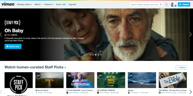 Muchas personas ven a Vimeo como poco más que el competidor más pequeño de YouTube. Pero el sitio ha logrado capturar un segmento de la industria del cine que es difícil de encontrar en otro lugar. Hogar de una gran cantidad de cineastas independientes, Vimeo es el lugar para encontrar películas de arte y ensayo refrescantes para transmitir a pedido. Estamos hablando del tipo de películas que verás en festivales como Tribeca, Sundance o SXSW.