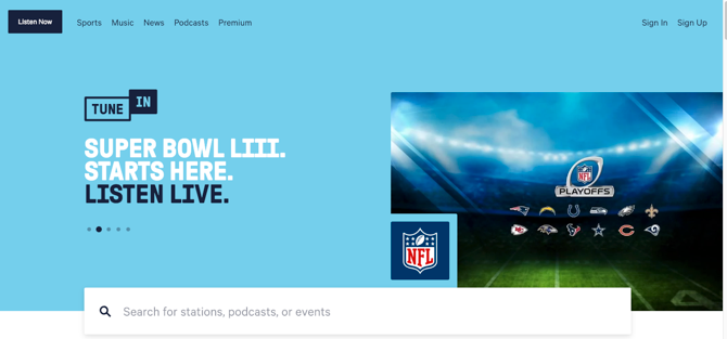 TuneIn es un servicio gratuito de radio por Internet que te permite transmitir más de 100 000 estaciones de radio reales de todo el mundo y más de 5,5 millones de podcasts directamente desde el sitio web de TuneIn o las aplicaciones gratuitas del servicio.