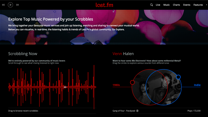 Last.fm escucha a escondidas tus hábitos de escucha y utiliza análisis estadísticos para predecir lo que te puede gustar. Al instalar el “alternador” de Last.fm en, por ejemplo, su cuenta de Spotify, el servicio ofrece recomendaciones precisas para otros artistas que probablemente disfrutes.