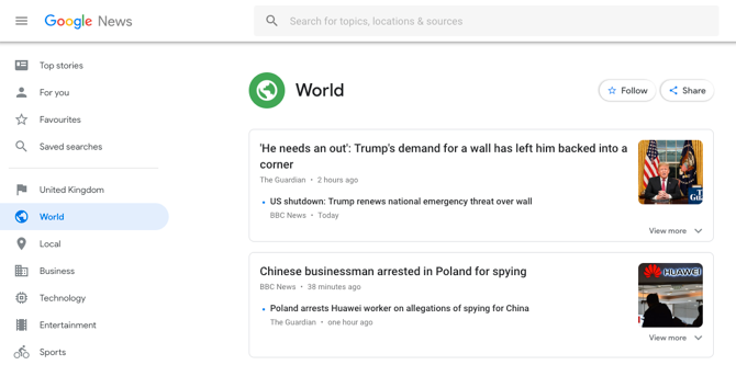 Google News es un agregador de noticias que recopila las principales historias de toda la web. El sitio también utiliza la salsa secreta de aprendizaje automático de Google para mostrar artículos que probablemente disfrutes, según los modelos estadísticos de Google sobre ti.