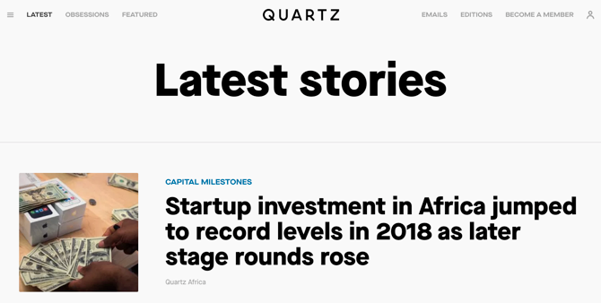 Quartz es el hogar de algunos de los periodistas más inteligentes y estimulantes que puedes encontrar. Su enfoque centrado en el mundo ofrece historias que es poco probable que encuentres en ningún otro lugar. Y su comprensión del mundo en línea hace que Quartz sea un sitio hermoso para visitar, sabiendo que siempre saldrás más informado que cuando llegaste.