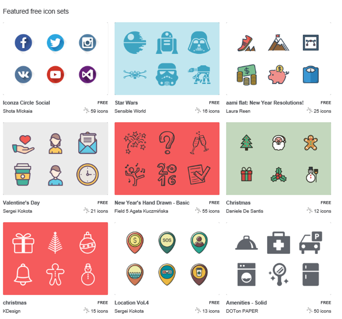 Entre los sets que puedes de iconos gratis que puedes descargar están los de redes sociales, Star Wars, día de san Valentín, navidad, ocasiones especiales, trabajo, familia y muchos más.