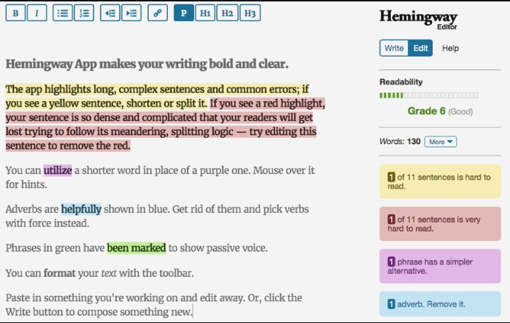 Hemingway Editor: simplificación y mejora de legibilidad.